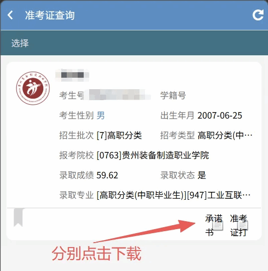 考生于2026年4月1日至2日,微信搜索“贵州装备制造职业学院招生就业”服务号并关注,在服务号中下载并打印准考证及承诺书(专项类考生除外),操作步骤详见附件1。