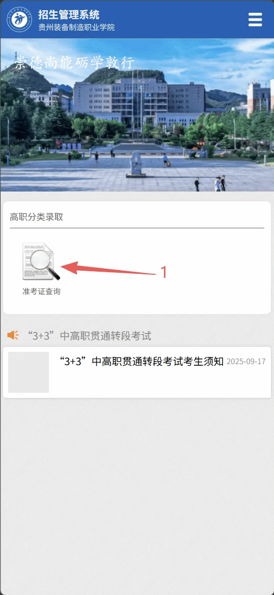贵州装备制造职业学院2026年分类考试招生准考证下载操作指南(手机端操作)学院服务号“贵州装备制造职业学院招生就业”二维码